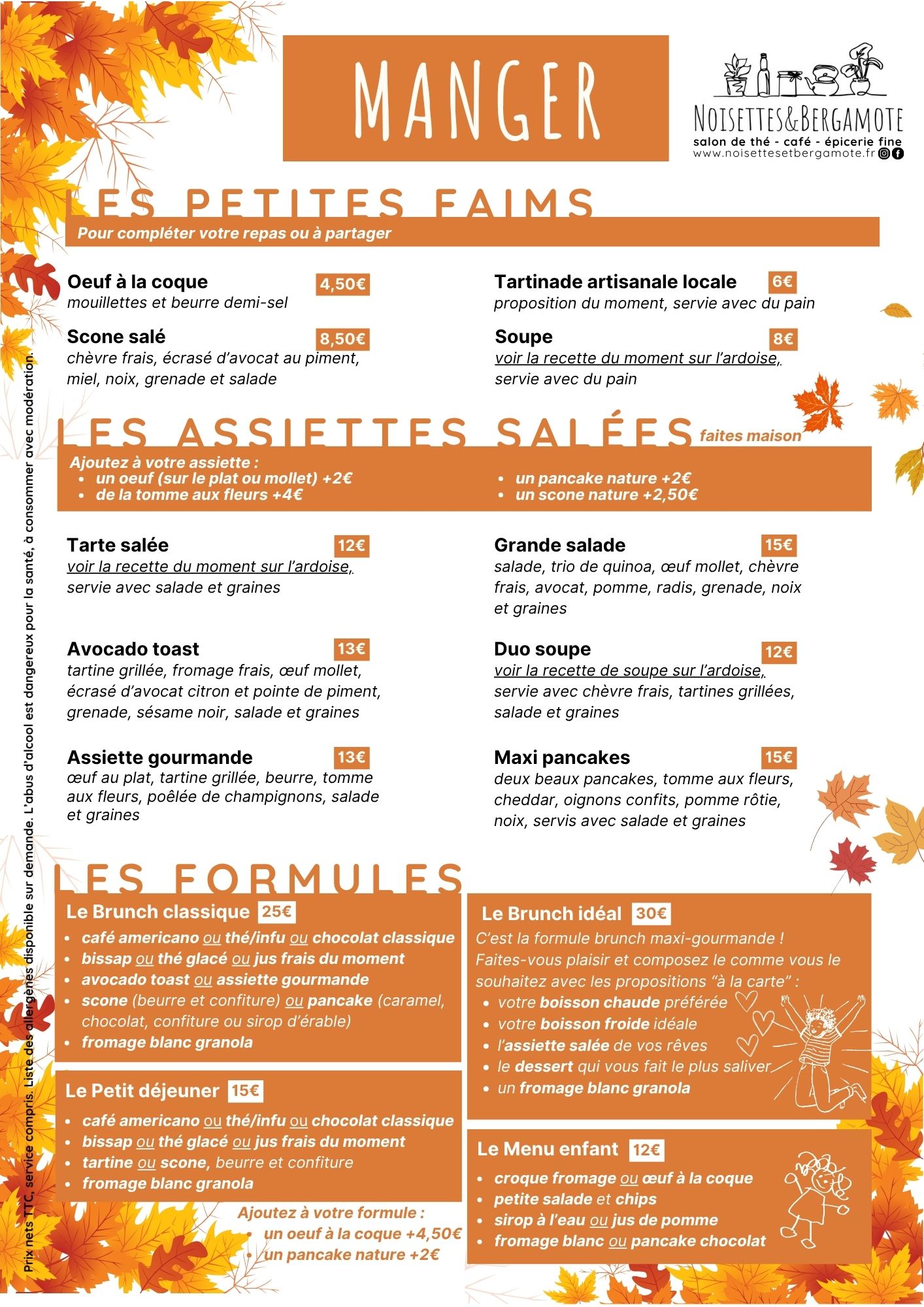 carte d'automne des plats, des brunchs et des formules
